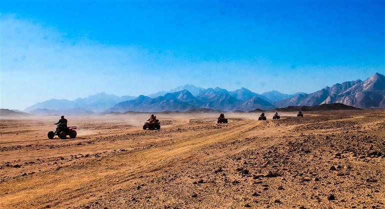 Experience the silence of the eastern Sahara Desert on a 3-hour quad bike safari. Explore the mysteries of the traditional Bedouins at a desert village.
